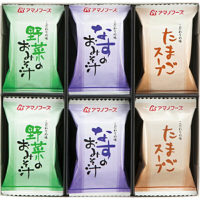【包装・熨斗対応】味わいづくしギフト アマノフーズ 味噌汁 フリーズドライ 野菜のおみそ汁 なすのおみそ汁 たまごスープ 出産祝い 内祝い 結婚内祝い 結婚祝い 引き出物 引っ越し 引越し お中元 お歳暮 新築祝 お返し ご挨拶 ギフト