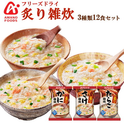 アマノフーズ フリーズドライ 雑炊(ぞうすい)3種類12食セット お湯を注いで10秒!お手軽本格派! 直火で炙った海鮮具材がこだわりの雑炊3種類を詰め合わせたセットです。