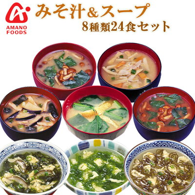 【アマノフーズ フリーズドライ】化学調味料無添加みそ汁&スープ8種24食セット お世話になったあの方へ贈り物やお返しにピッタリ★